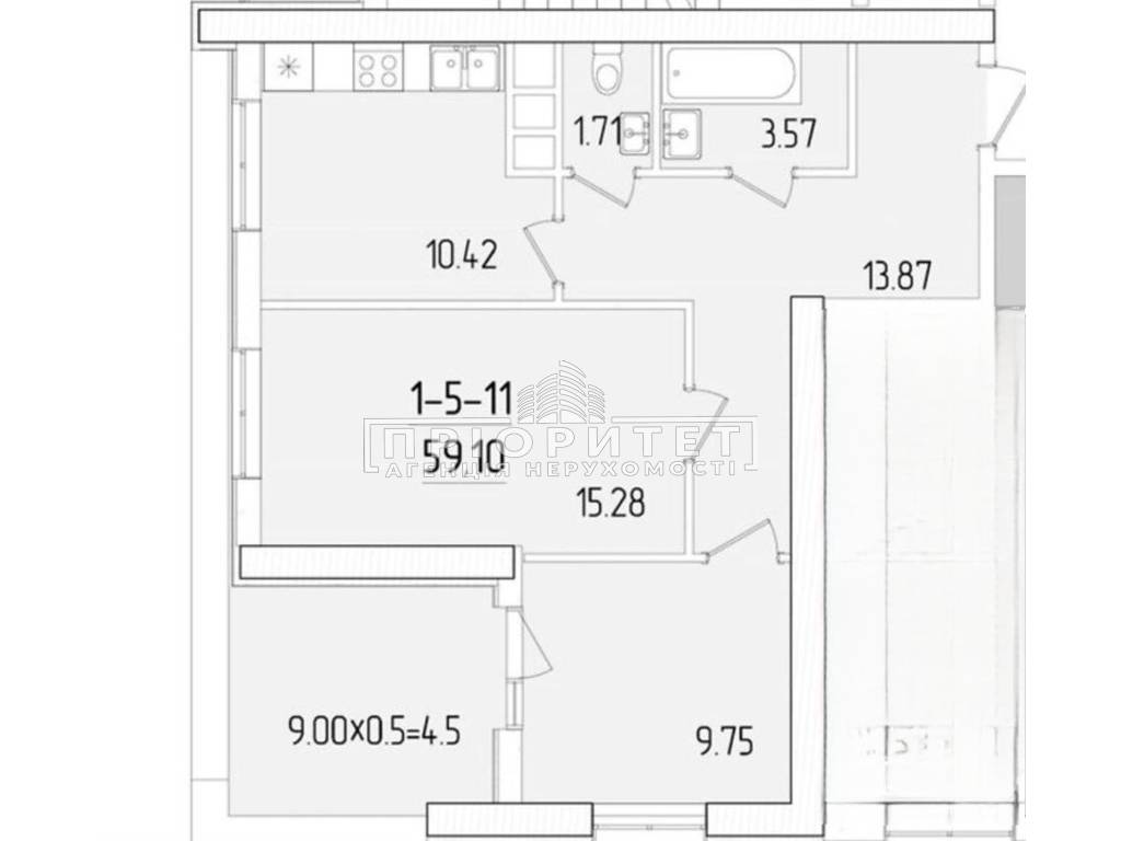 | Общая площадь | 59.10 кв.м. |