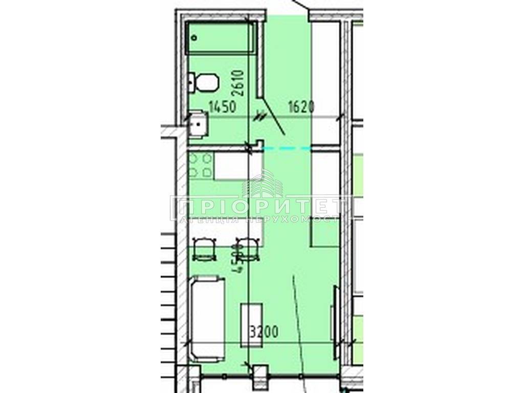 1-комнатная квартира, 23.00 м2