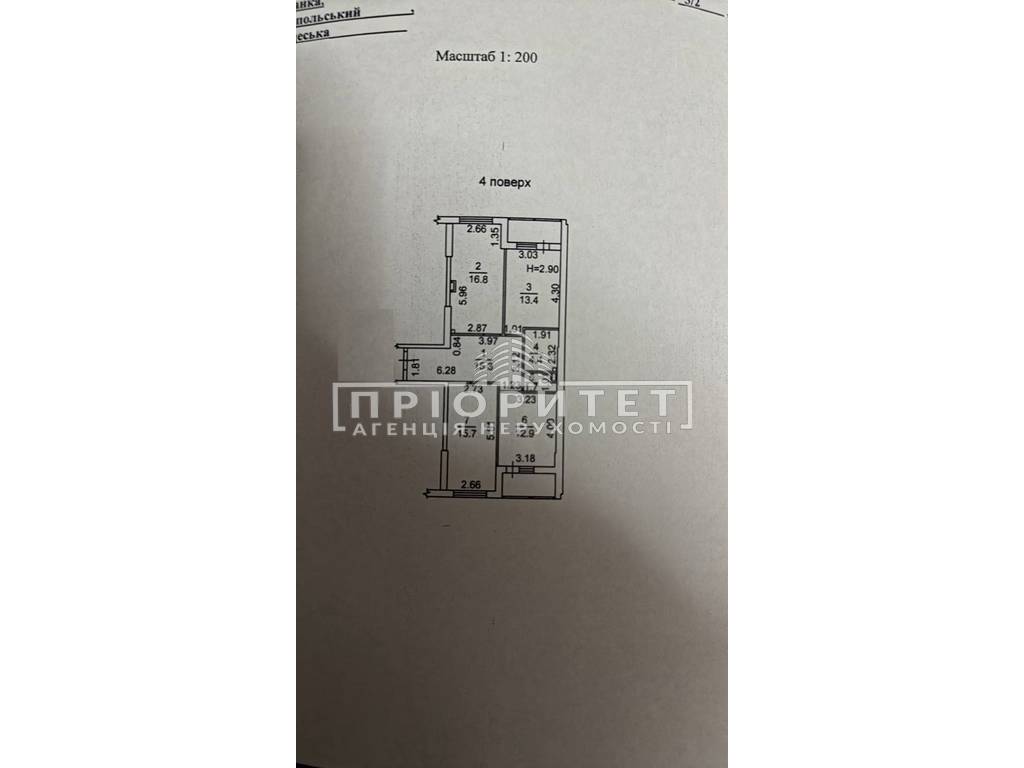 | Высота потолков | 2.90 м |