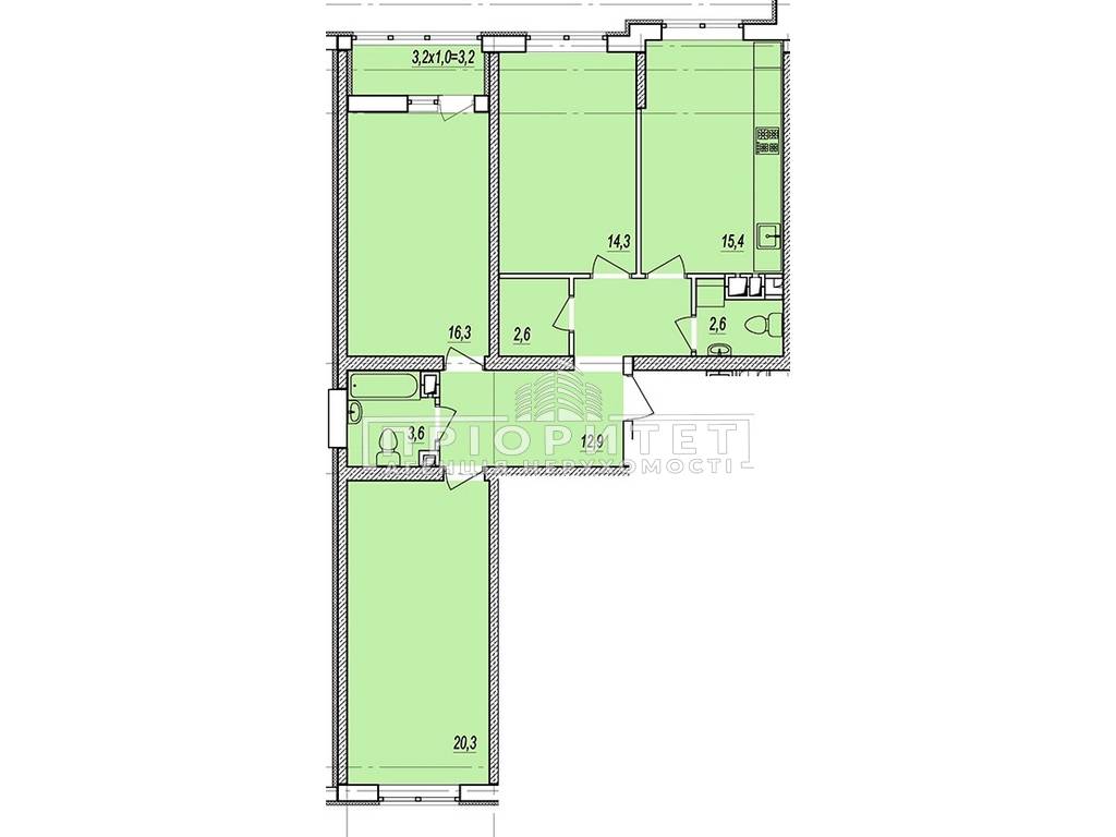 3-комнатная квартира, 92.30 м2