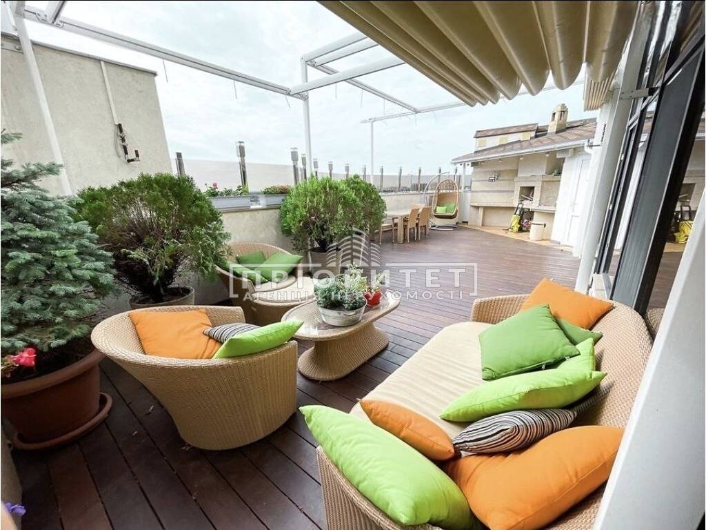 ID-29326 Трехуровневый пентхаус в элитном жилом комплексе "Гранд Парк". Просторная терраса 60кв.м. и видом на город, обустроенная с маркизами с датчиками погодных условий, системой вентиляторов и туманных разбрызгивателей воды, есть зона барбекю и зона отдыха. Грамотно распланированное пространство, звукоизоляция по всему периметру. Установлена система "умный дом". На первом этаже-две детские комнаты, хозяйская спальня+3 санузла. Второй этаж-кухня-студия и столовая с выходом на террасу, санузел.