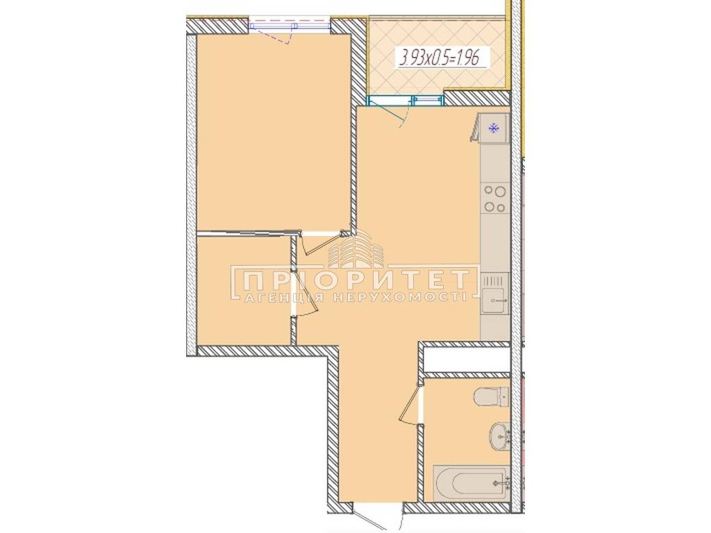 1-комнатная квартира, 43.00 м2