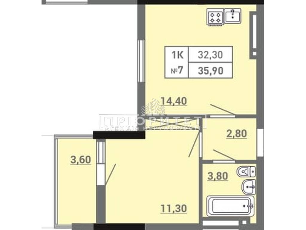 1-комнатная квартира, 35.90 м2