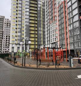 Квартира з новим ремонтом у центрі міста в новому будинку. Житловий комплекс із просторою територією, дитячим майданчиком, місцями для ма…