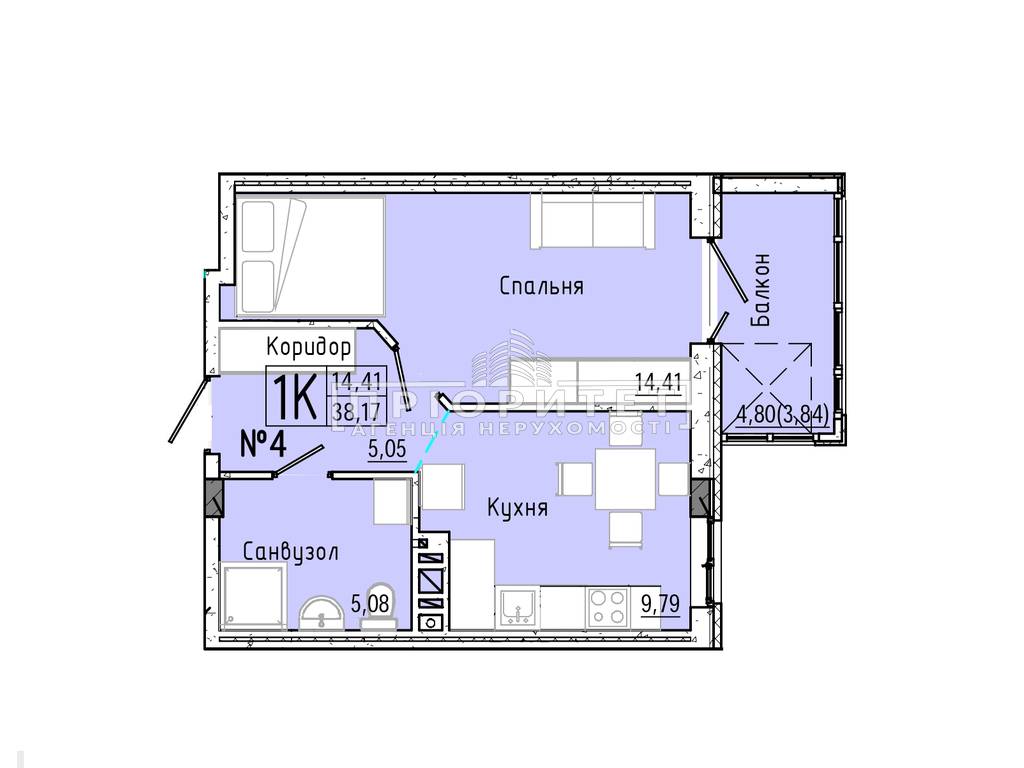 1-кімнатна квартира, 38.17 м2