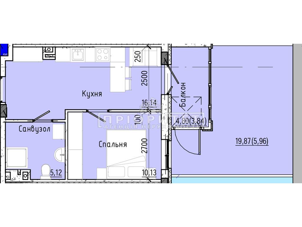 1-кімнатна квартира, 41.19 м2