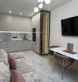 Однокімнатна квартира великої площі – 48 з гаком метрів. Виконаний справді дуже якісний та дорогий ремонт. При декорі використовували лише якісні матеріали. Повна комплектація всіма необхідними меблями та технікою. Техніка від провідних світових виробників, меблі на замовлення.