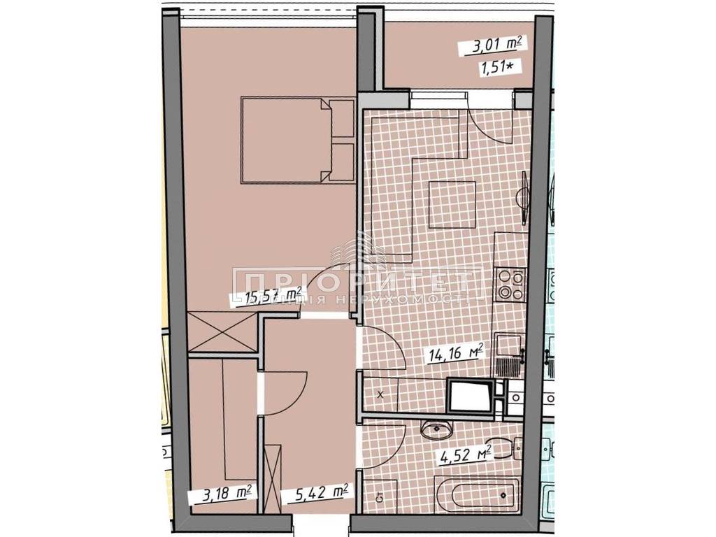 1-кімнатна квартира, 45.95 м2
