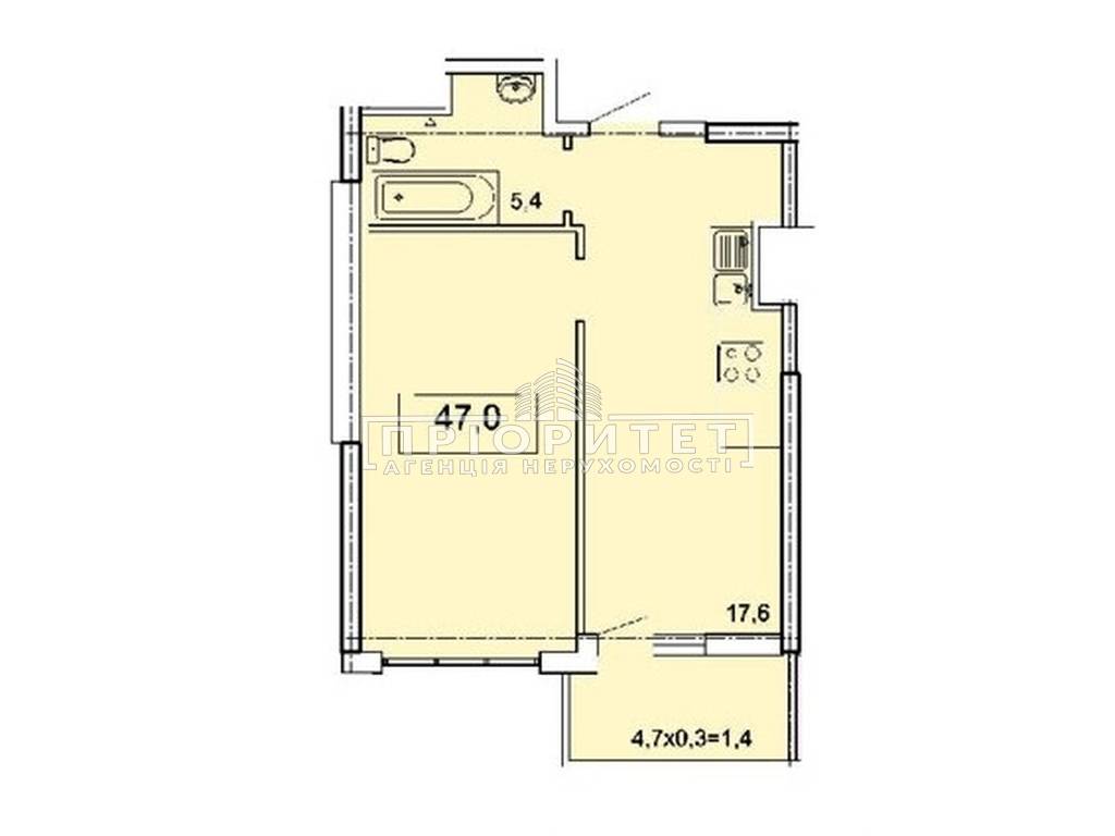 1-кімнатна квартира, 46.80 м2