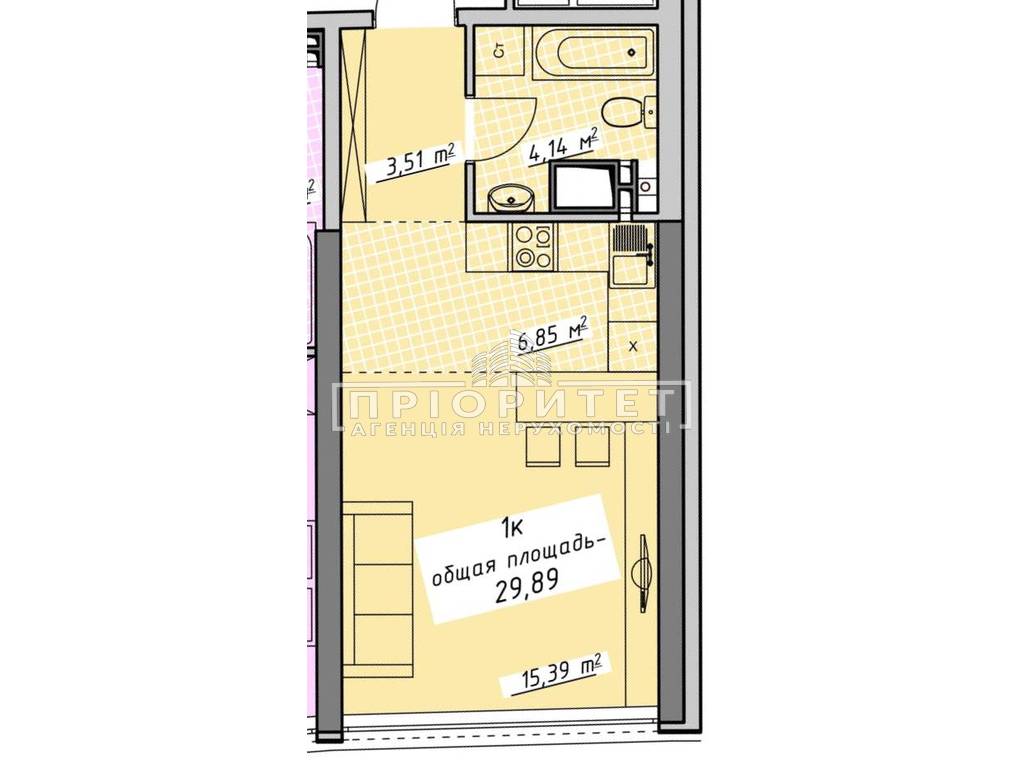 1-кімнатна квартира, 29.91 м2