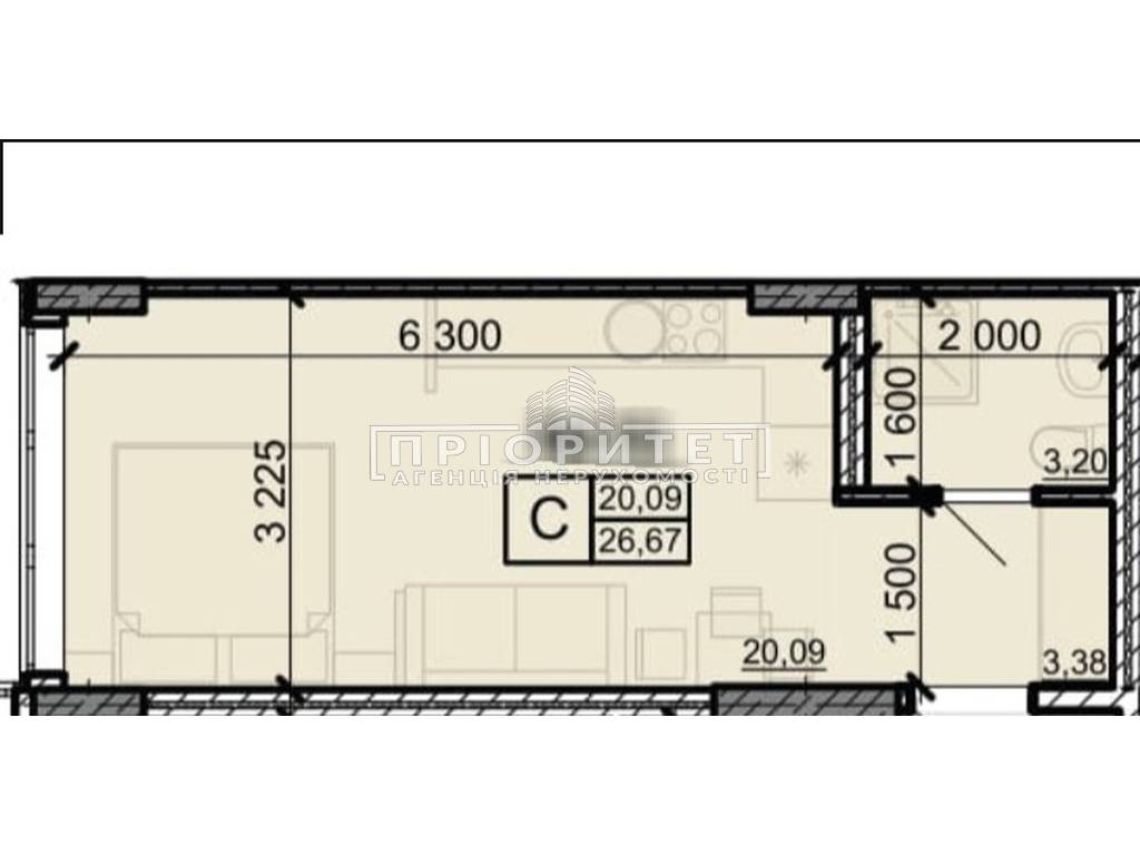 1-кімнатна квартира, 27.00 м2