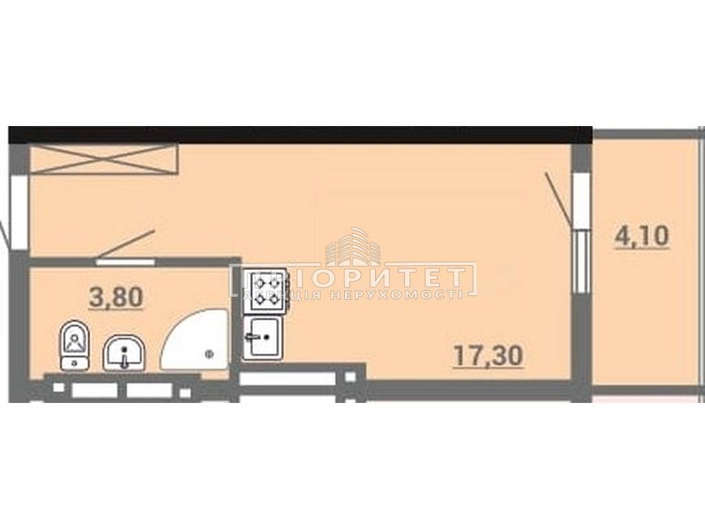 1-кімнатна квартира, 25.20 м2