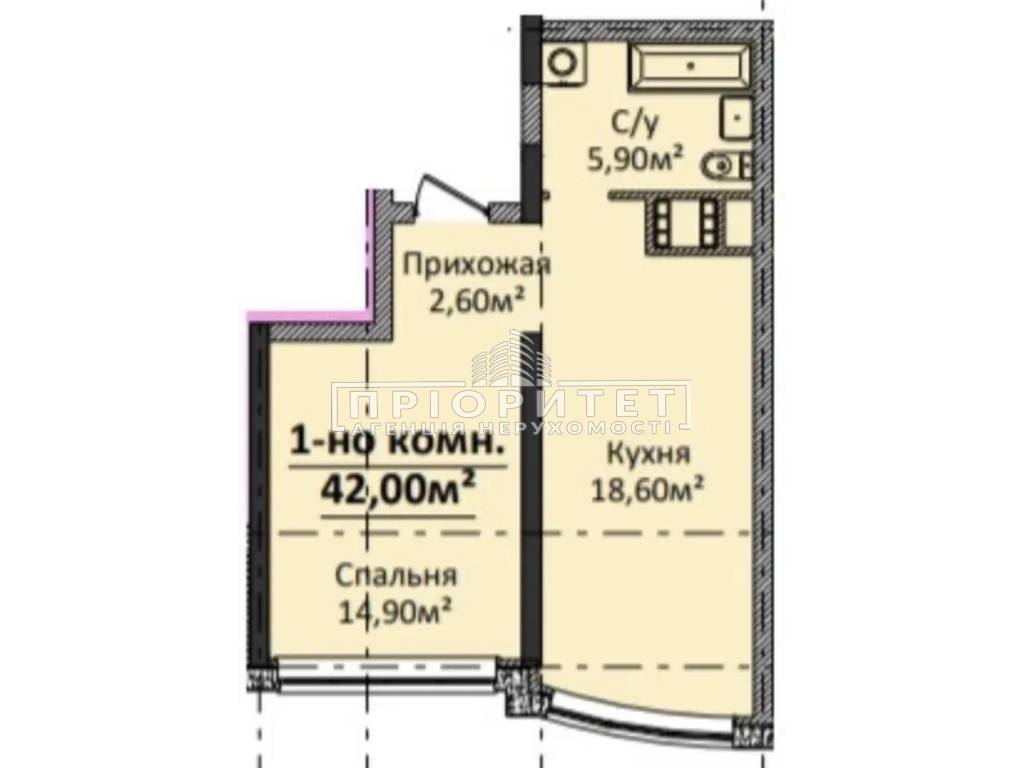 1-кімнатна квартира, 42.00 м2
