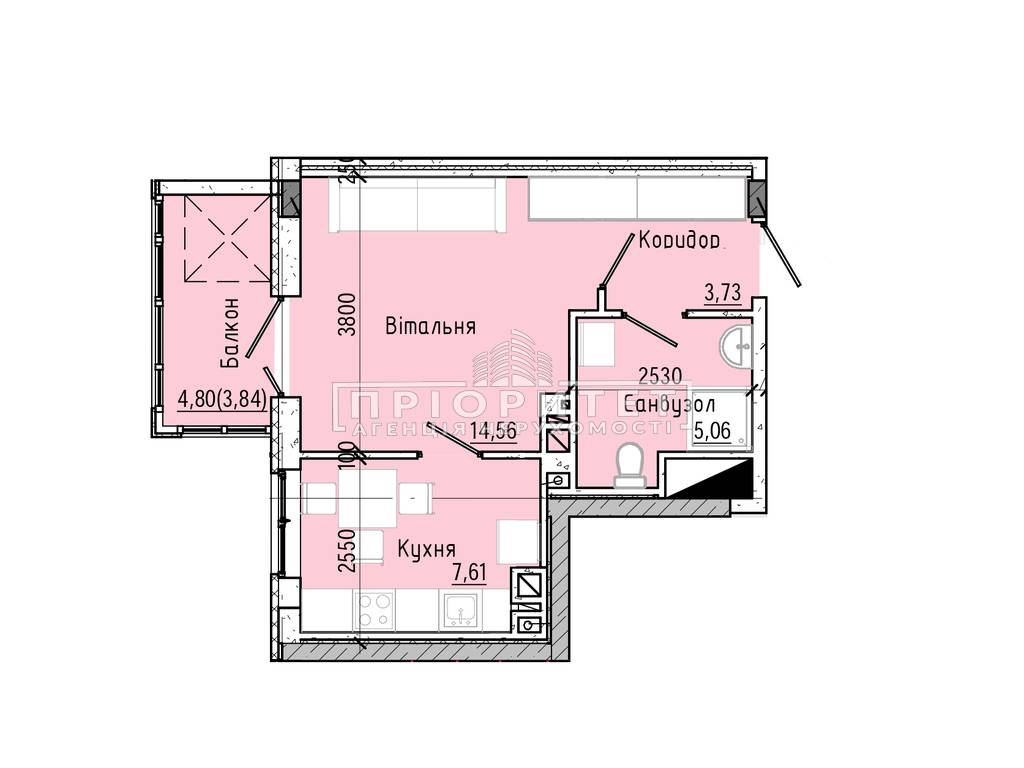 1-кімнатна квартира, 34.80 м2