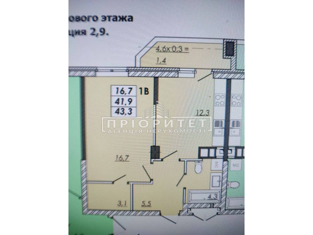 1-кімнатна квартира, 43.30 м2