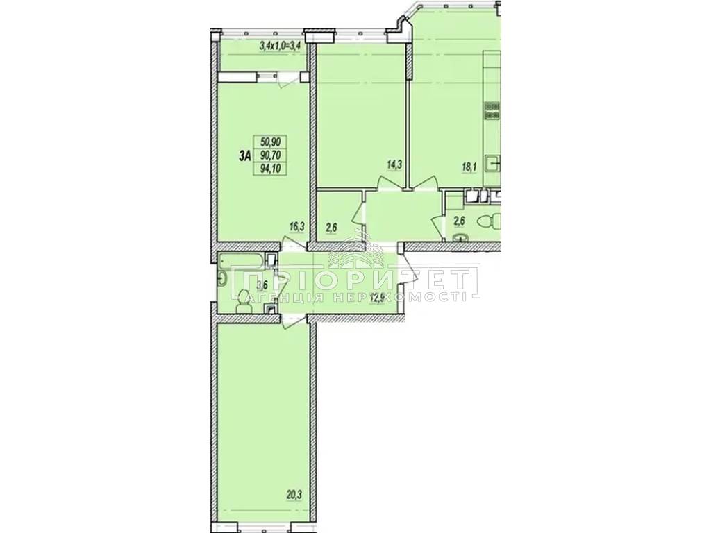 3-кімнатна квартира, 96.00 м2