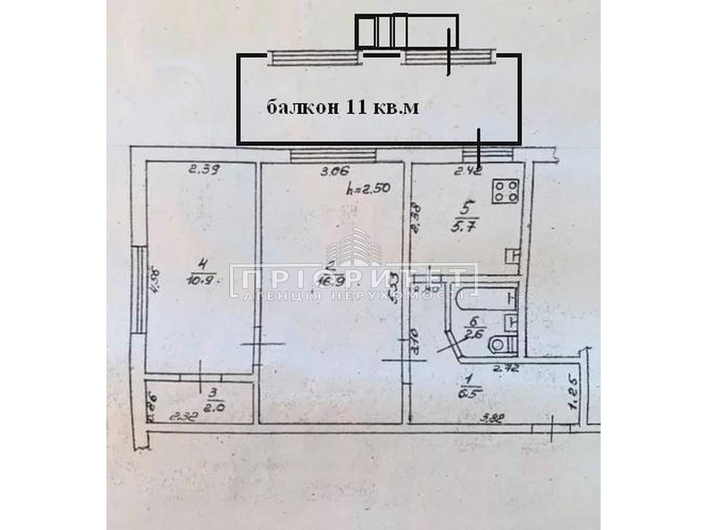 Висота стелі 2.50 м