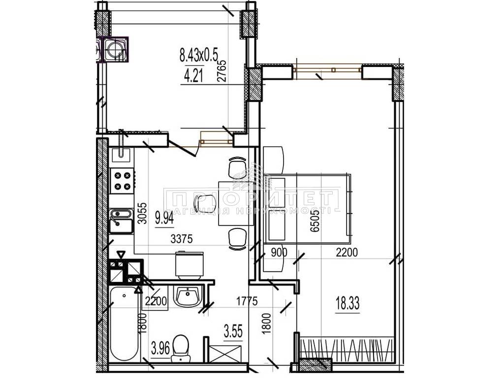 1-кімнатна квартира, 40.00 м2