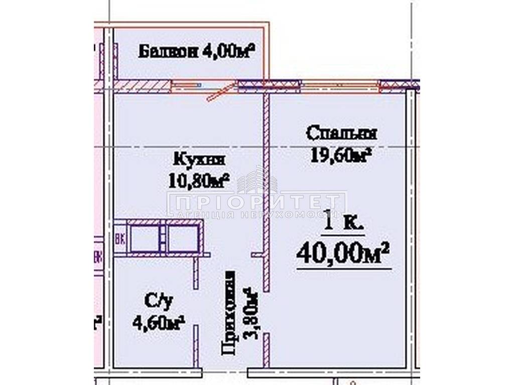 1-кімнатна квартира, 40.00 м2