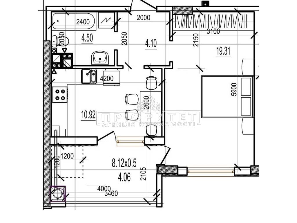 1-кімнатна квартира, 42.89 м2