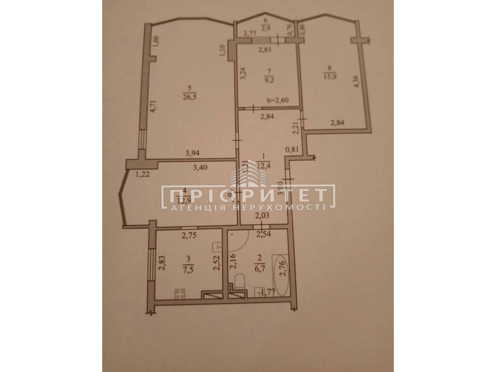 | Висота стелі | 2.60 м |