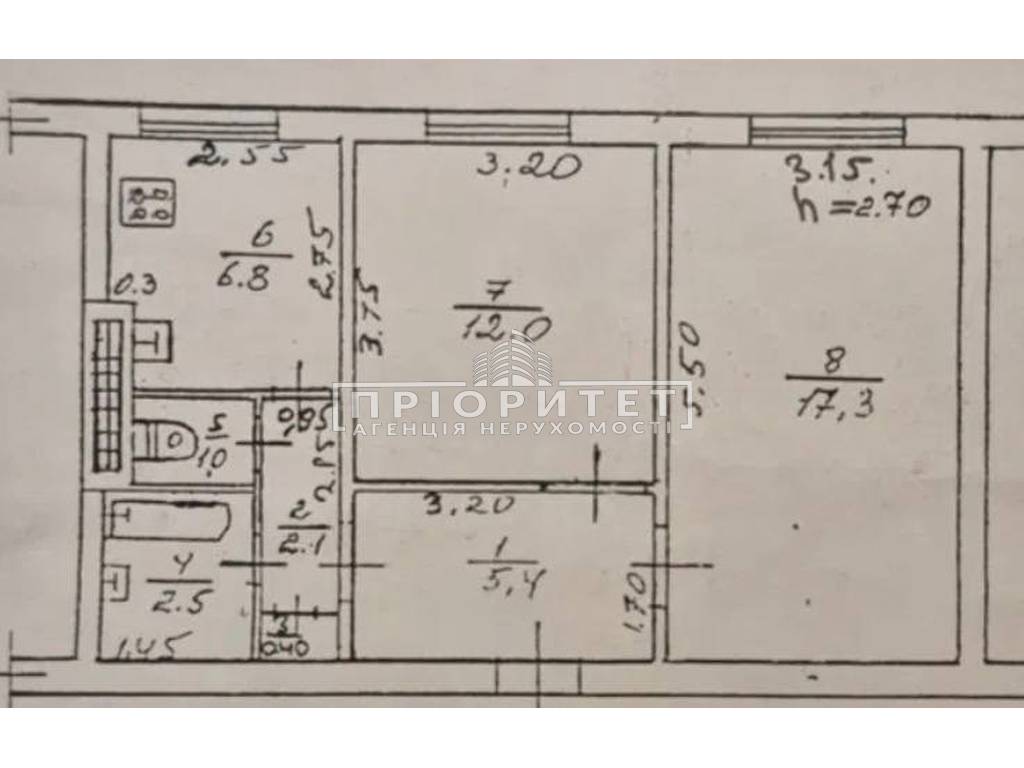 Висота стелі 2.60 м