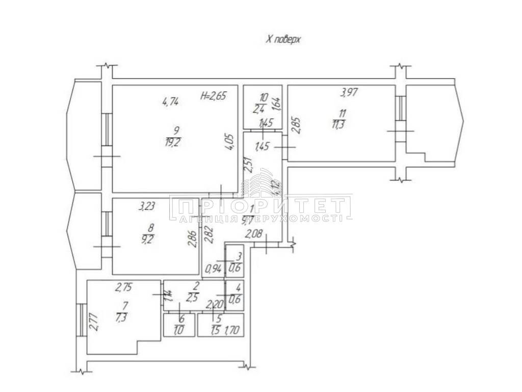 Висота стелі 2.80 м